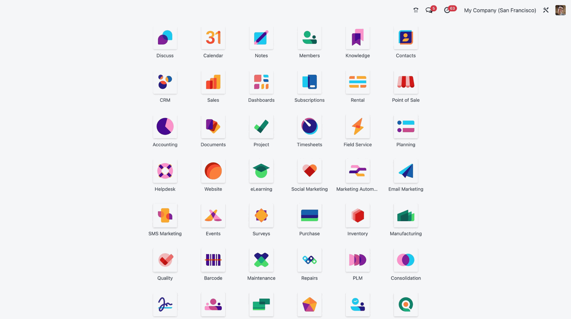 Odoo は、会計、在庫、販売、人事、プロジェクト管理などの重要な機能を統合システムに統合することで、業務運営を合理化します。 Odoo は、自動化、リアルタイムのデータ アクセス、シームレスなコラボレーションにより、効率を高め、手動タスクを削減し、意思決定を最適化します。 Odoo のスマートでスケーラブルなソリューションでビジネスの可能性を解き放ちましょう!